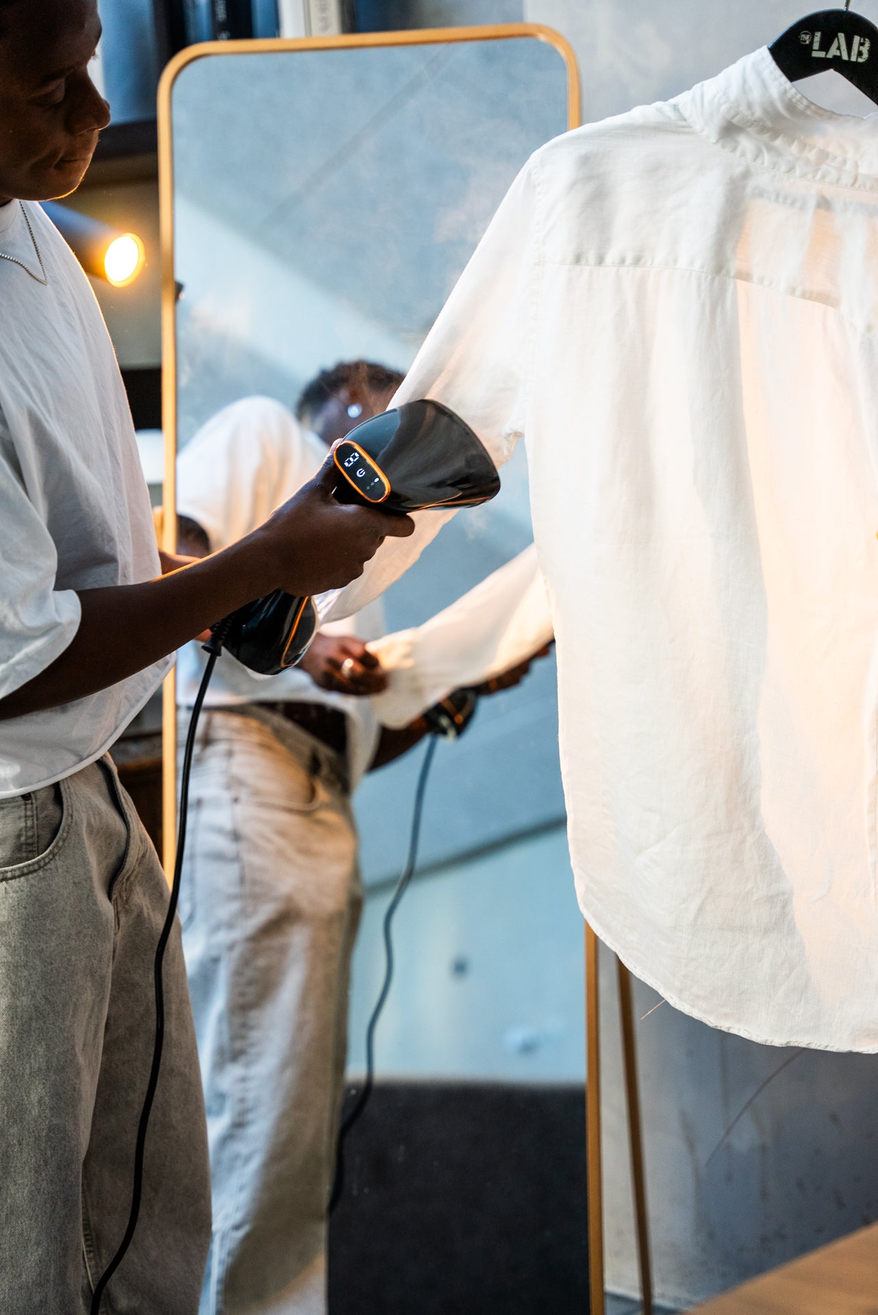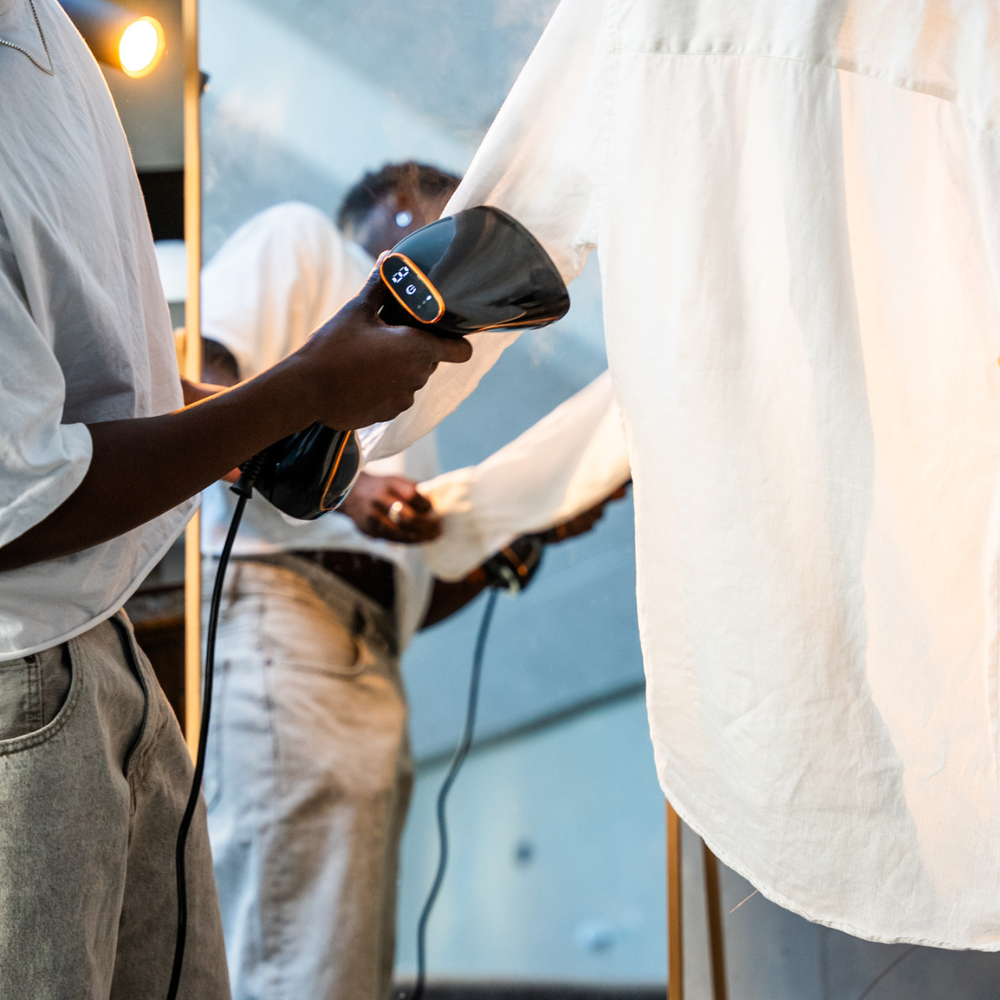 Vandtanken rummer 100 ml, hvilket rækker til ca. én til to skjorter ad gangen. Den er nem at fylde op og klar igen på få sekunder.